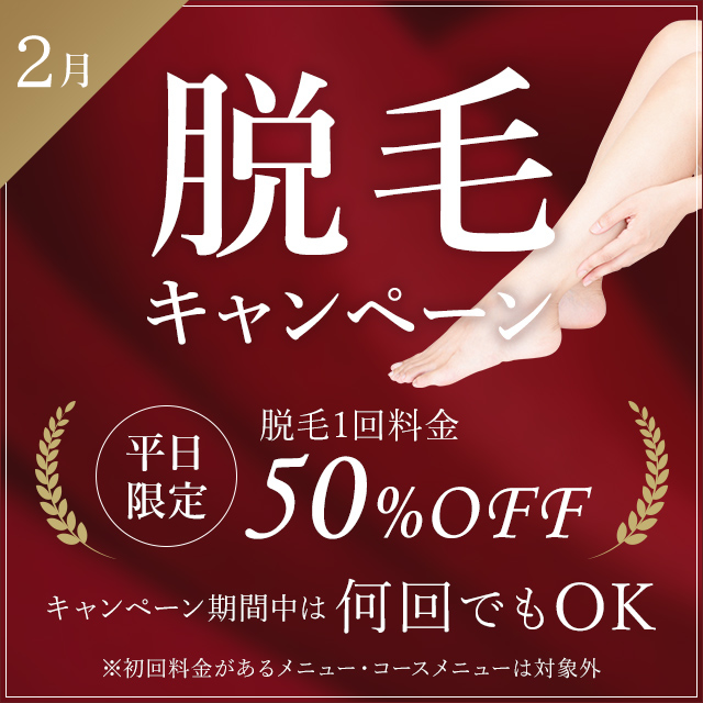 2月脱毛キャンペーン!【平日限定】脱毛 1 回50%OFF!!