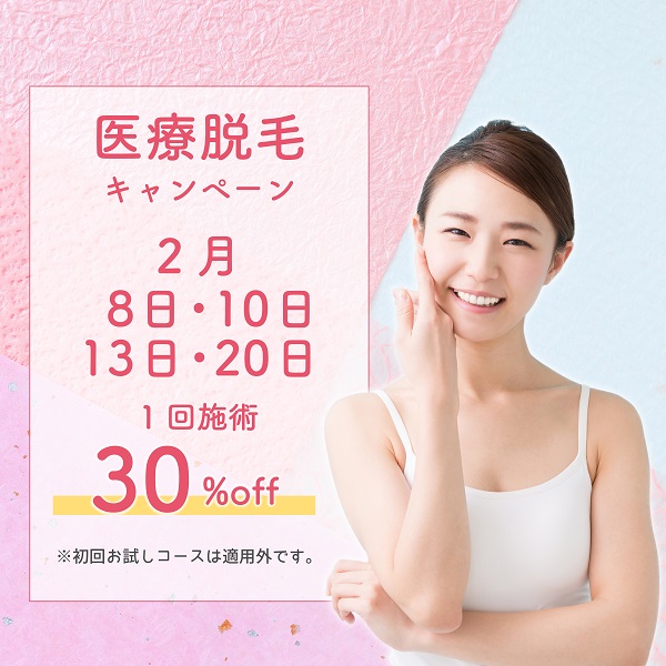 ★2月限定★脱毛キャンペーン♪8日・10日・13日・20日だけ!脱毛 1 回30%OFF!