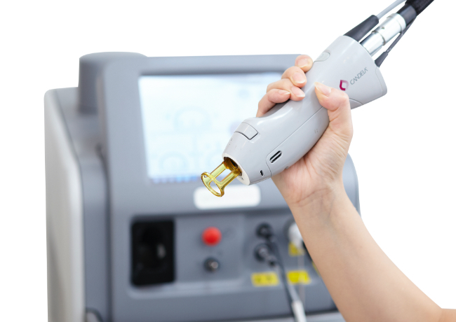 当院では医療用の「ロングパルスアレキサンドライトレーザー・YAGレーザー」を使用し、皮膚の深部まで広範囲に熱作用を加えます。エステなどでは取り扱いができない高出力な機械のため、高い美容効果が期待できます。